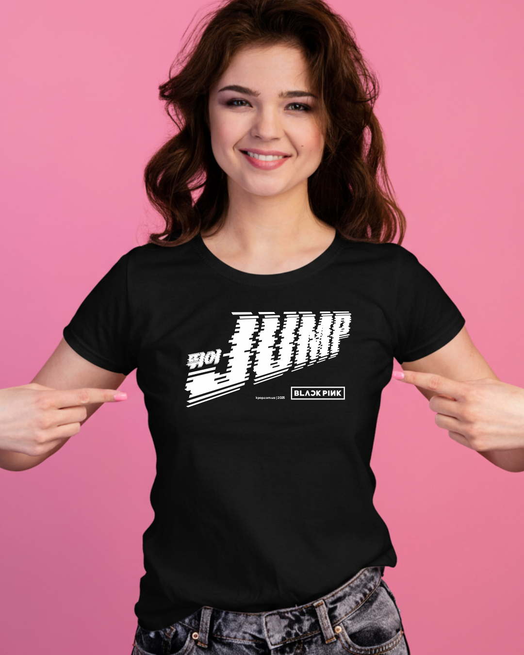 Чорна жіноча футболка з написом Jump — модний мерч Blackpink